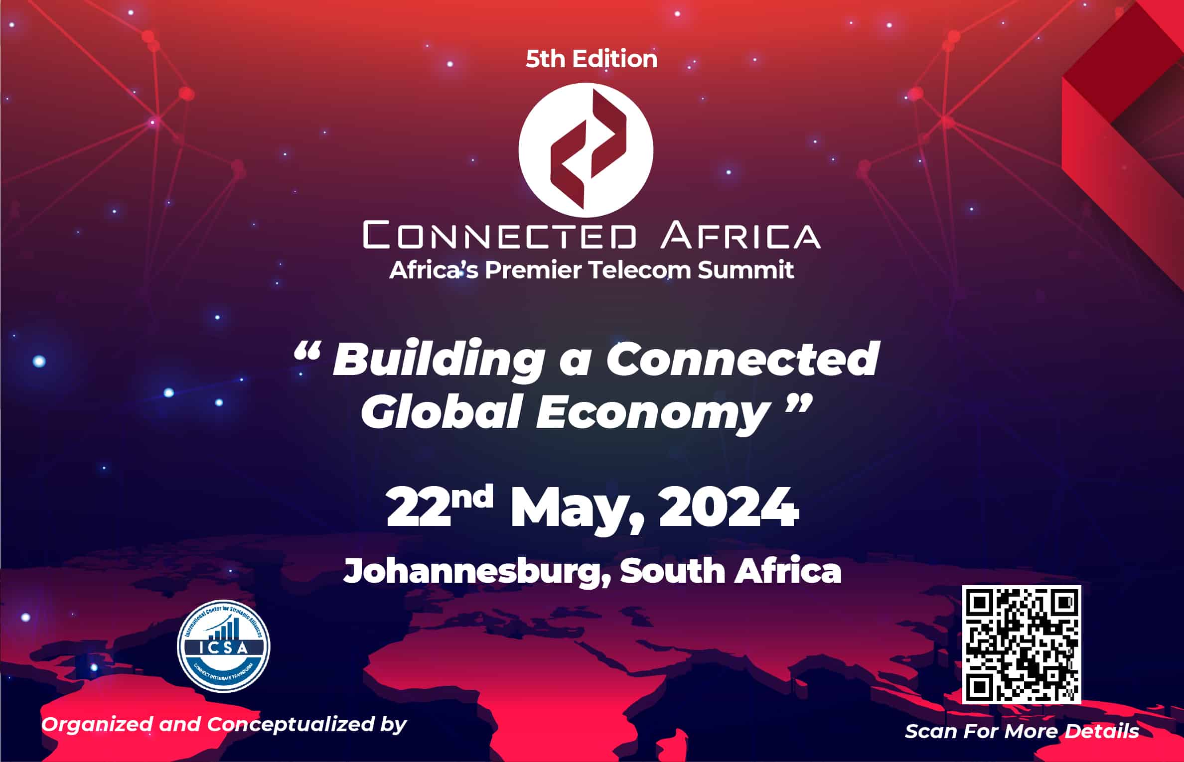 The International Center for Strategic Alliances is thrilled to announce the much-anticipated 5th Edition Connected Africa- Telecom Innovation & Excellence Awards 2024 (Africa’s Premier Telecom Summit) scheduled for May 22nd, 2024, in Johannesburg, South Africa.