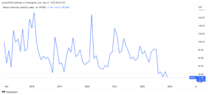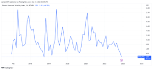 According to TradingView data examined by CryptoSlate, the Bitcoin (BTC) volatility index reached an all-time low on December 27.