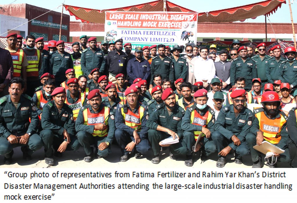 LAHORE (Nov 7, 2019): Fatima Fertilizer Company Limited (FFL) teamed up with District Disaster Management Authorities of Rahim Yar Khan under headings from National Disaster Management Authority (NDMA) to direct a huge scale modern false drill on Tuesday, November 5, 2019. More than 1500 people took an interest in this activity including neighborhood occupants from close by networks, laborers from Fatima Fertilizer plant, arranged in Mukhtar Garh inside the Rahim Yar Khan locale and delegates from 18 neighborhood region Government offices including the Police, Health, Education, Revenue, Civil Defense, Information, Improvement, National Highway and Motorway Police, Social Welfare, Railroads, Provincial Disaster Management Authority (PDMA) and District Territorial Transport Authority.