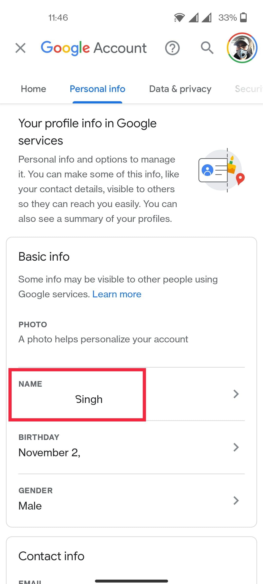 To add a nickname for Google Meet on Android, tap on About me on the Personal Info tab. Tap on Name in the next window and edit your nickname to your liking.