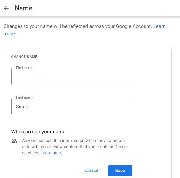 It is important to note that whatever changes that you make to your name and nickname will reflect on all the Google products and services such as Gmail, Assistant, YouTube, etc. Unfortunately, there is no way to just change your name for Google Meet while keeping the previous name intact for other Google products.