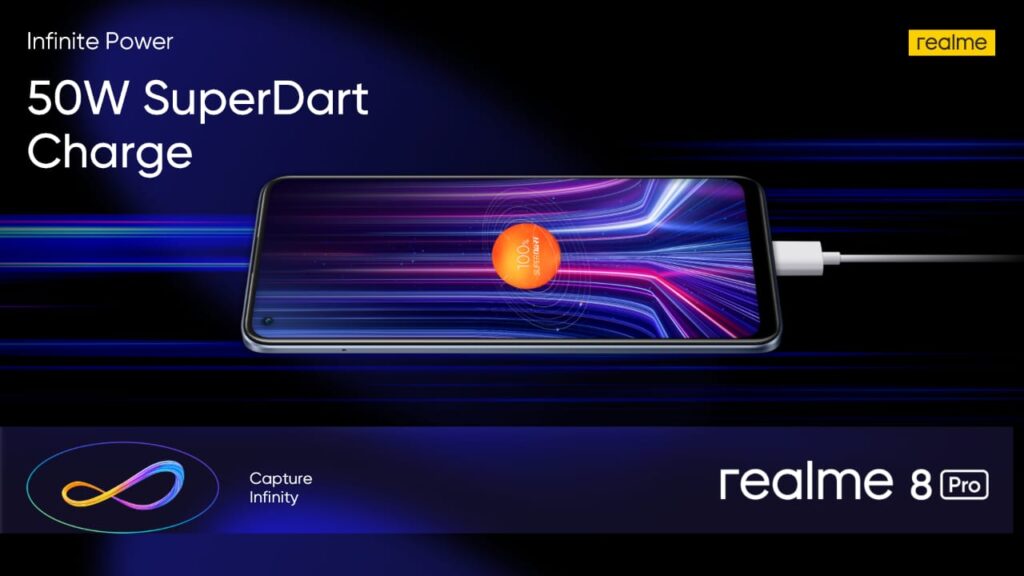 More so, the phone is a powerhouse when it comes to battery and charging. With a 4,500 mAh battery that gets powered by a 50W SuperDart Charge, one doesn’t have to wait long enough to use their phone on-the-go. The realme 8 Pro charges to 100% in 47 minutes and 50% in 17 minutes – that is a massive reduction in waiting time. But once it is powered up, people get to enjoy an immersive and encapsulating Super AMOLED Display that’s