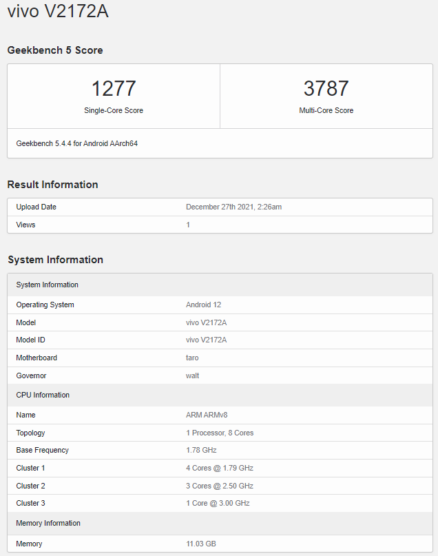 The Geekbench listing also reveals the presence of a processor with codename taro and 1 + 3 + 4 core configuration. Also, the listing confirms an integrated Adreno 730G graphics processing unit. These confirm that the upcoming handset will be powered by an octa-core Qualcomm Snapdragon 8 Gen 1 processor. To those unaware, Snapdragon 8 Gen 1 is Qualcomm’s flagship offering as of now, and is built on a 4nm fabrication processor.
