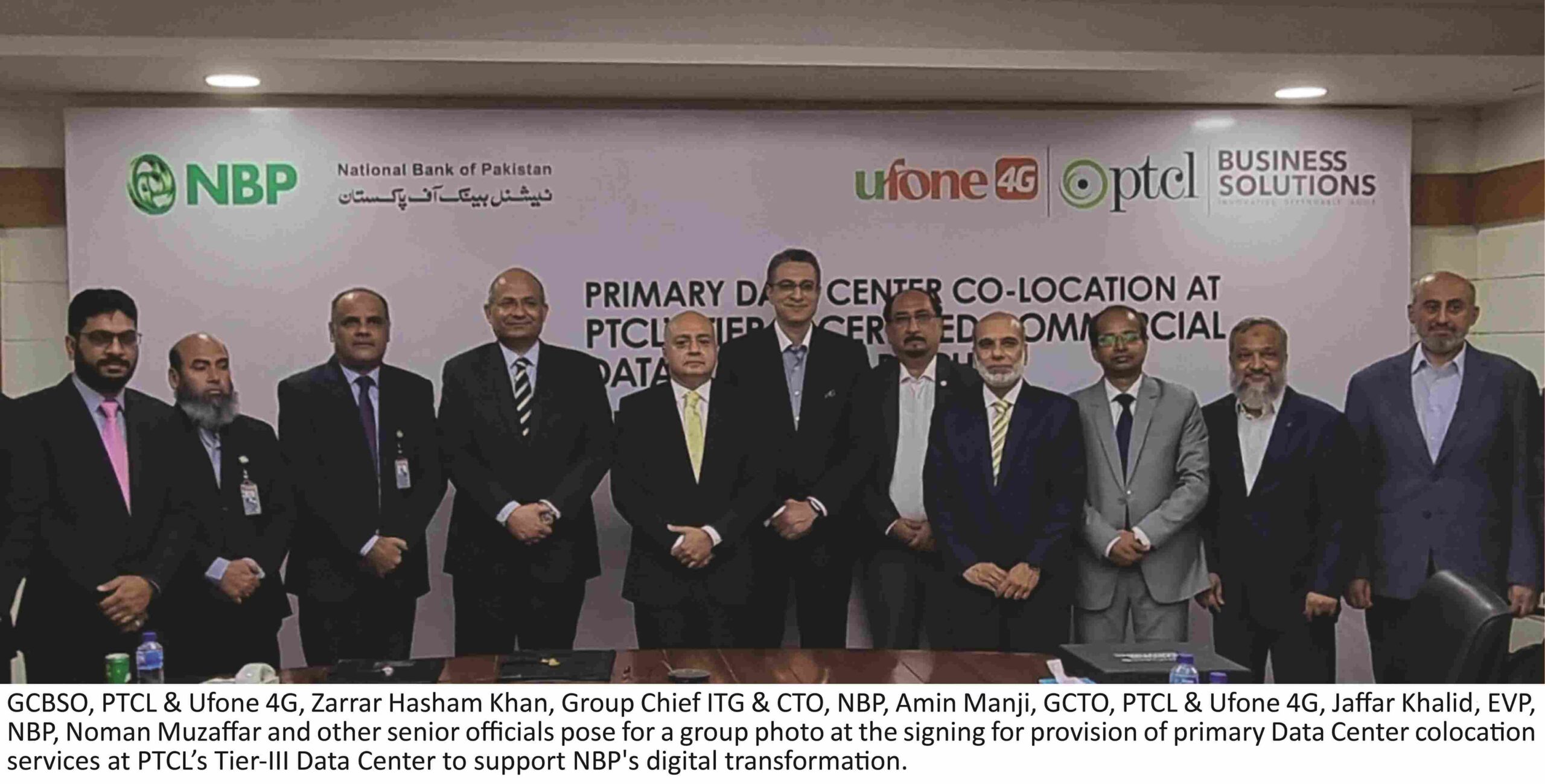 Jafar Khalid, Group Chief Technology Officer, PTCL & Ufone 4G, Noman Muzaffar, EVP Divisional Head ITG National Bank of Pakistan, Basharat Qureshi, Group VP Enterprise PTCL, Umer Ilyas, Group VP Data Centers PTCL, Umar Farooqi, Group Director Enterprise PTCL, were also present on the occasion, along with other senior officials.