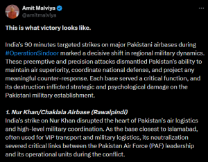 Indian Official Tweet on X Regarding Misinformation of Nur khan Air Base Destroyed: