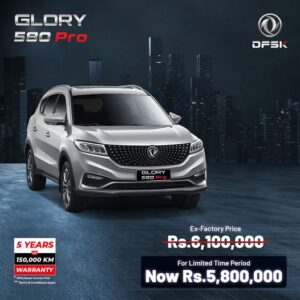 The price reduction has been applied to certain models. After a Rs 300,000 price cut, the flagship Glory 580 Pro is now available for PKR 58.0 lac.