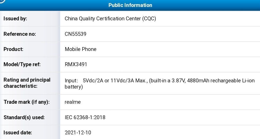 Realme 9i with model number RMX3491 has now been certified by China Quality Certification and Indonesia Telecom. CQC certification reveals that the upcoming Realme 9i will be equipped with a 4,880mAh battery unit and 33W fast charging support. Alongside, the Realme 9i, the Realme 9 Pro Plus with model number RMX3393, and Narzo 50 with RMX3286 have also acquired Indonesia Telecom certification.