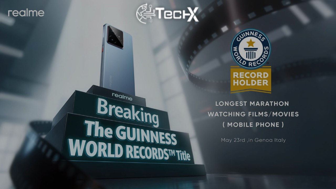 May 19, 2025, Lahore, Pakistan — Global smartphone brand realme has once again demonstrated its technological prowess. On the evening of May 23, 2025, during the “Endless Power Journey” European cruise event, realme’s upcoming flagship device, the GT 7, successfully challenged the Guinness World Record for the Longest Marathon Watching Films/Movies (mobile phone).