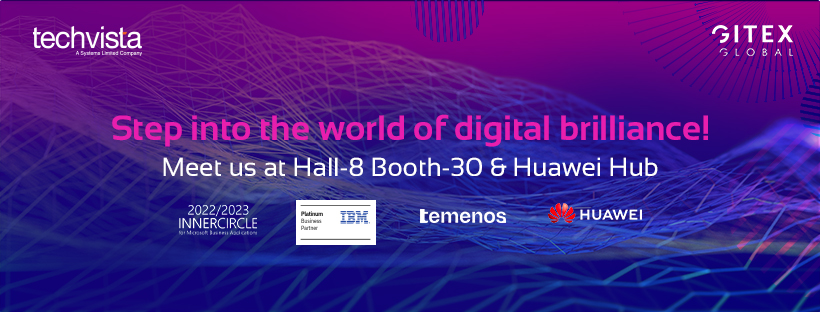 Techvista Systems, a subsidiary of Pakistan’s leading IT company – Systems Limited, will be heading to GITEX Global 2022, held at Dubai World Trade Centre from October 10 to 14, 2022. The enthusiastic tech aspirants can meet our distinguished experts at Booth-30 in Hall-8 and the Huawei Hub.