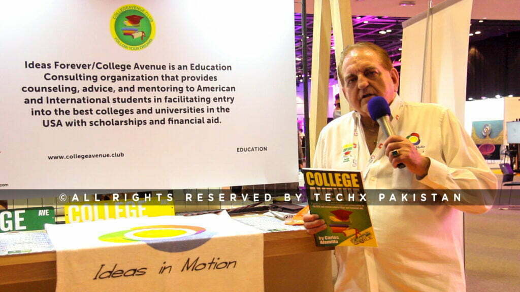 An intriguing booth that we discovered at the GITEX 2020 was held by Mr. Carlos Alamilla. He is the CEO and President of Ideas Forever College Avenue. Mr. Carlos seemed like a man of great expertise and reputation. He had experience of over 20 years up his sleeve and an impressive ideology.