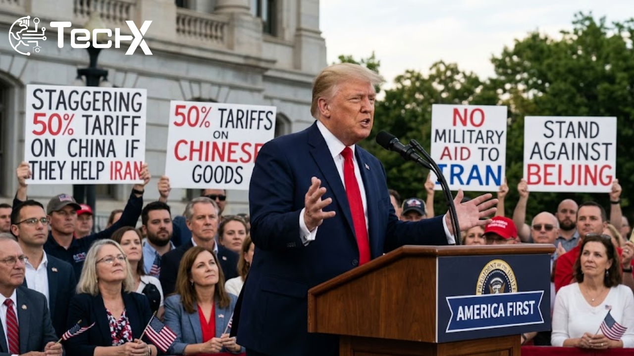 U.S. President Donald Trump has reportedly warned that the United States may impose a “staggering” 50% tariff on Chinese goods if China is found providing military assistance to Iran amid rising tensions in the Middle East. The statement comes during a period of heightened geopolitical pressure involving Washington, Tehran, and Beijing.